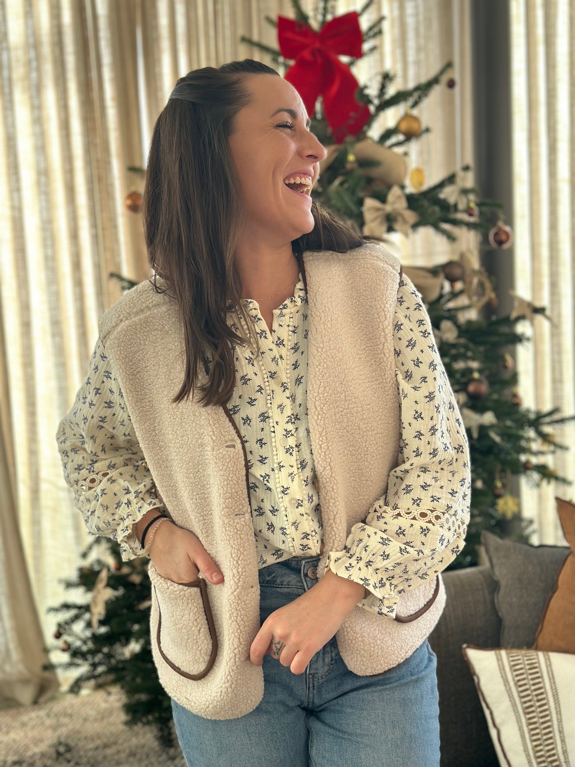 Veste beige camel S/manche moumoute