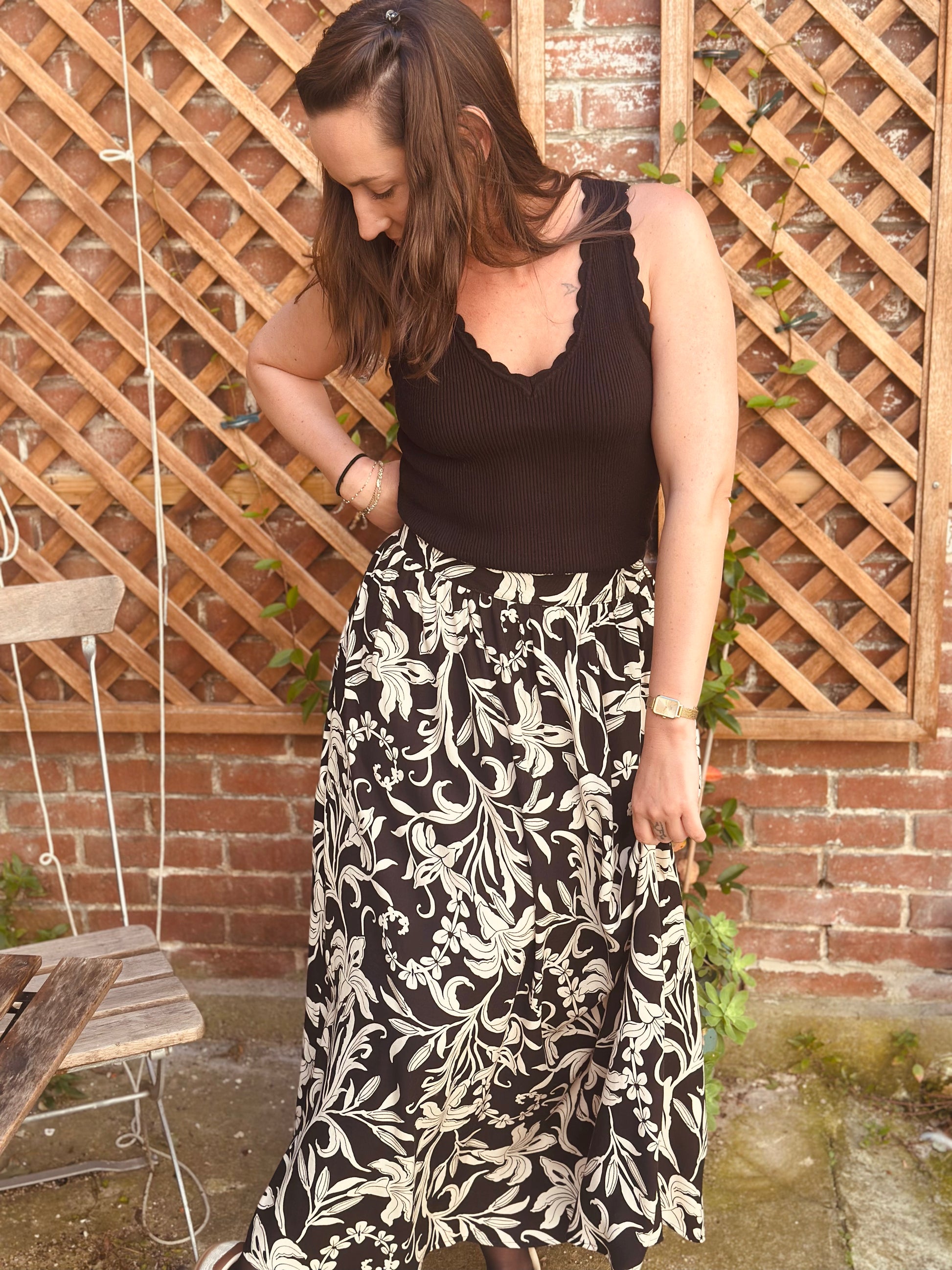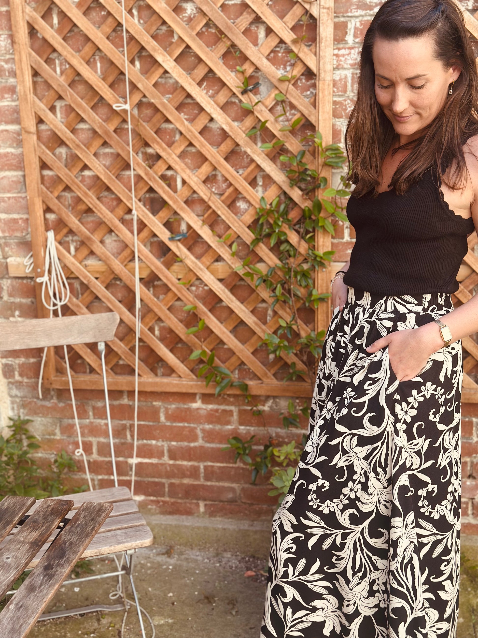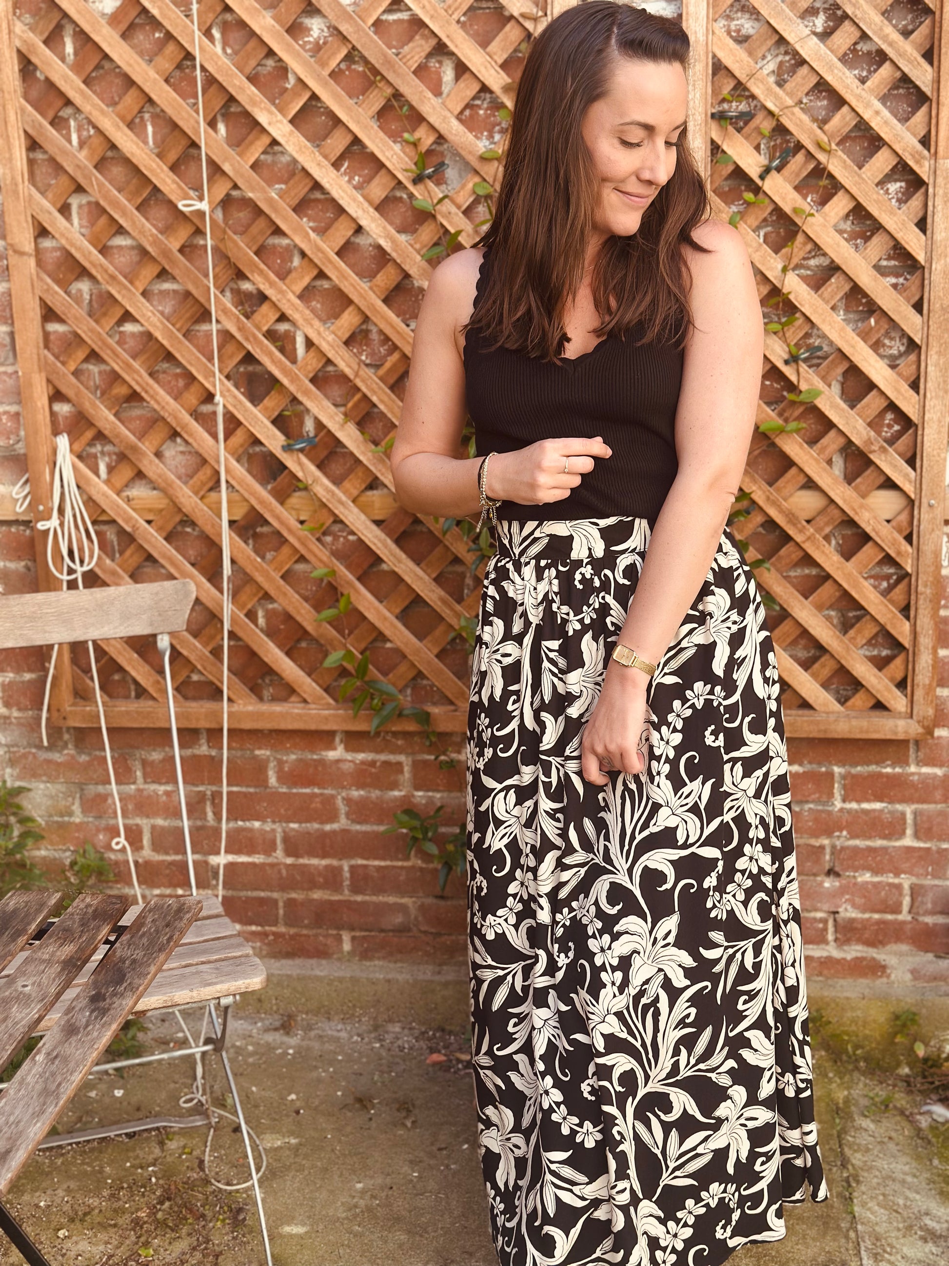 Jupe longue noir feuillage