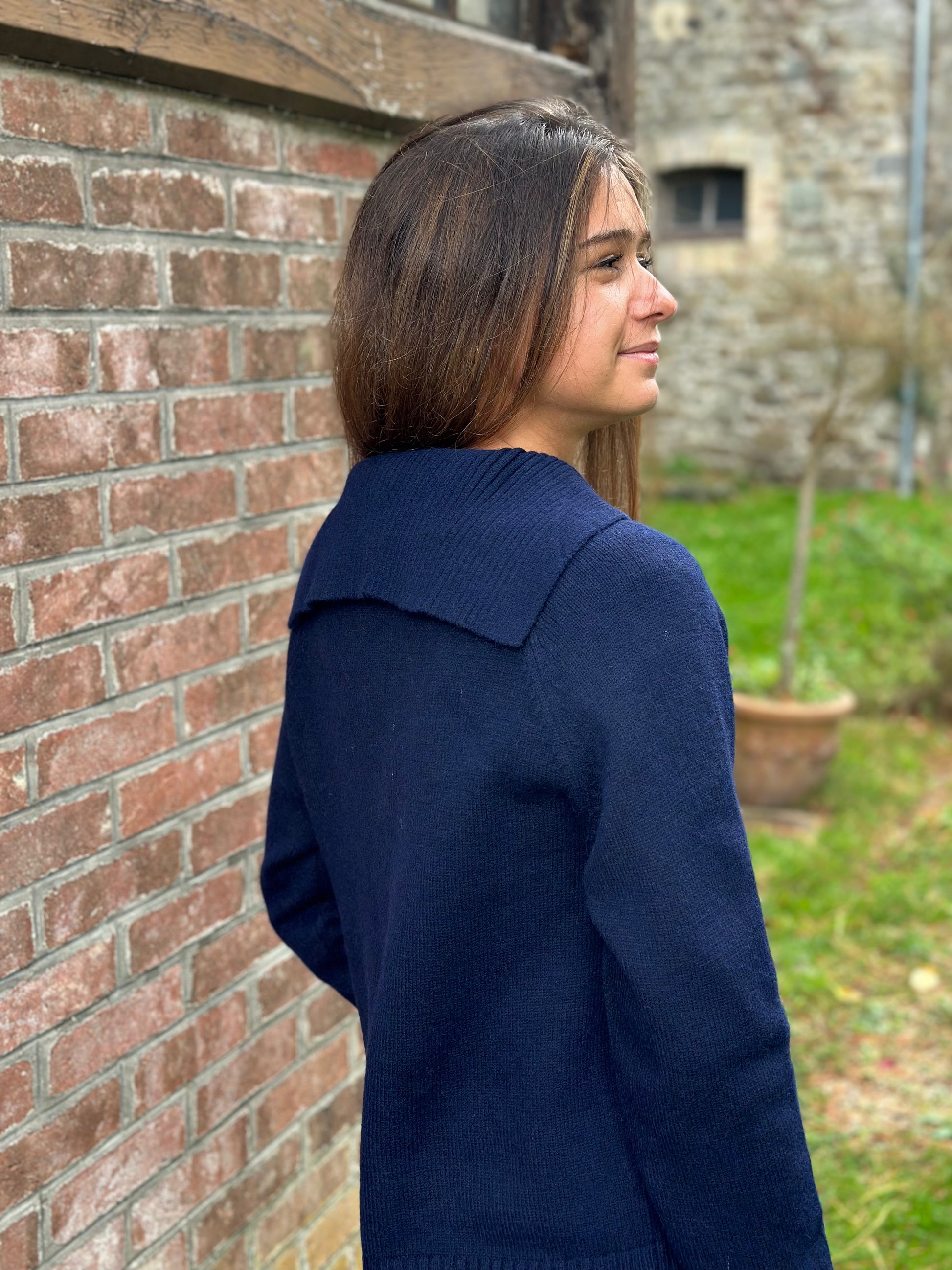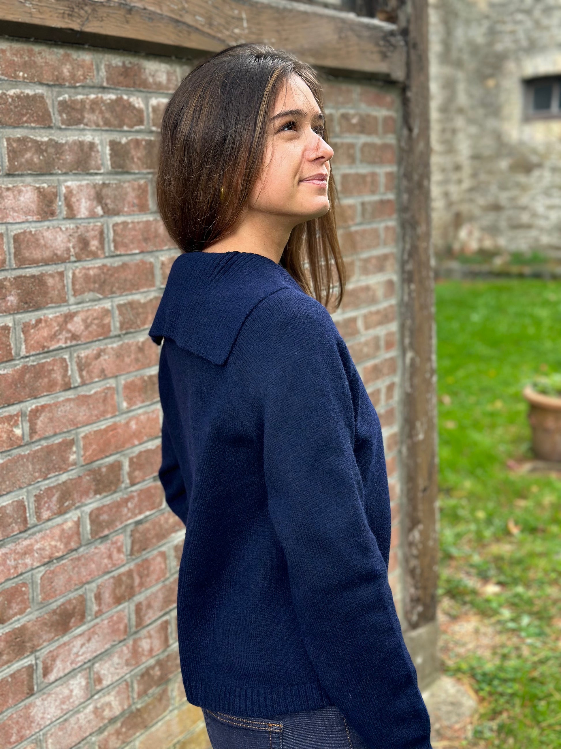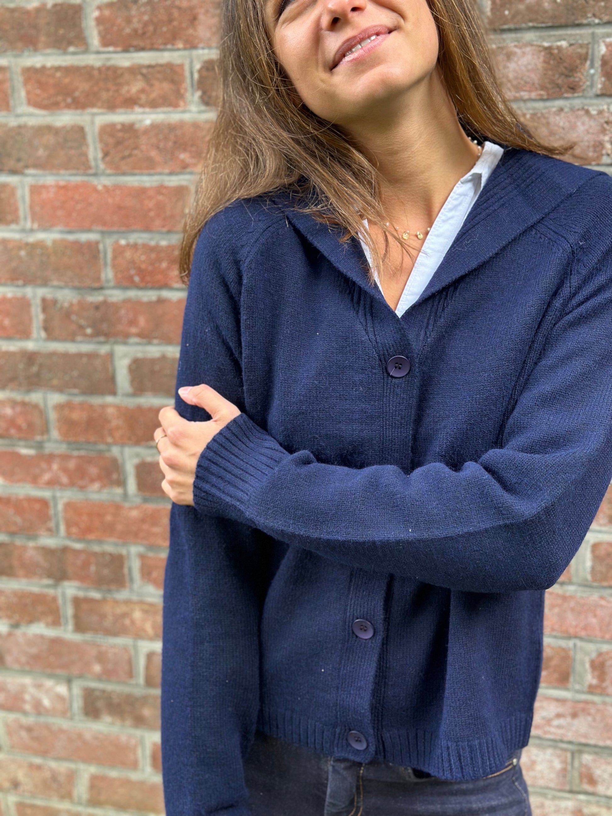 Devenu un classique ! Le gilet marine grand col pour vous tenir bien chaud aux épaules !