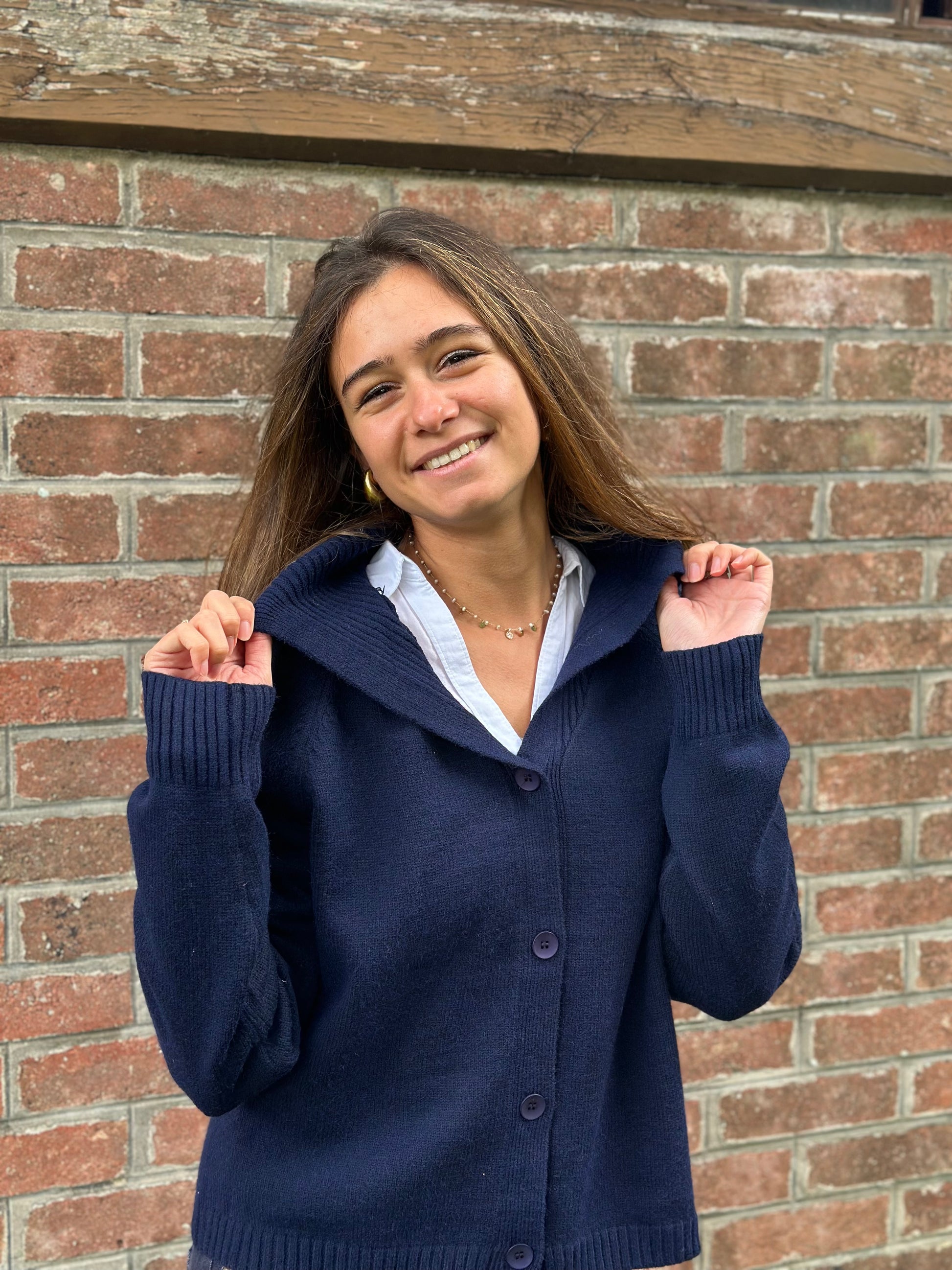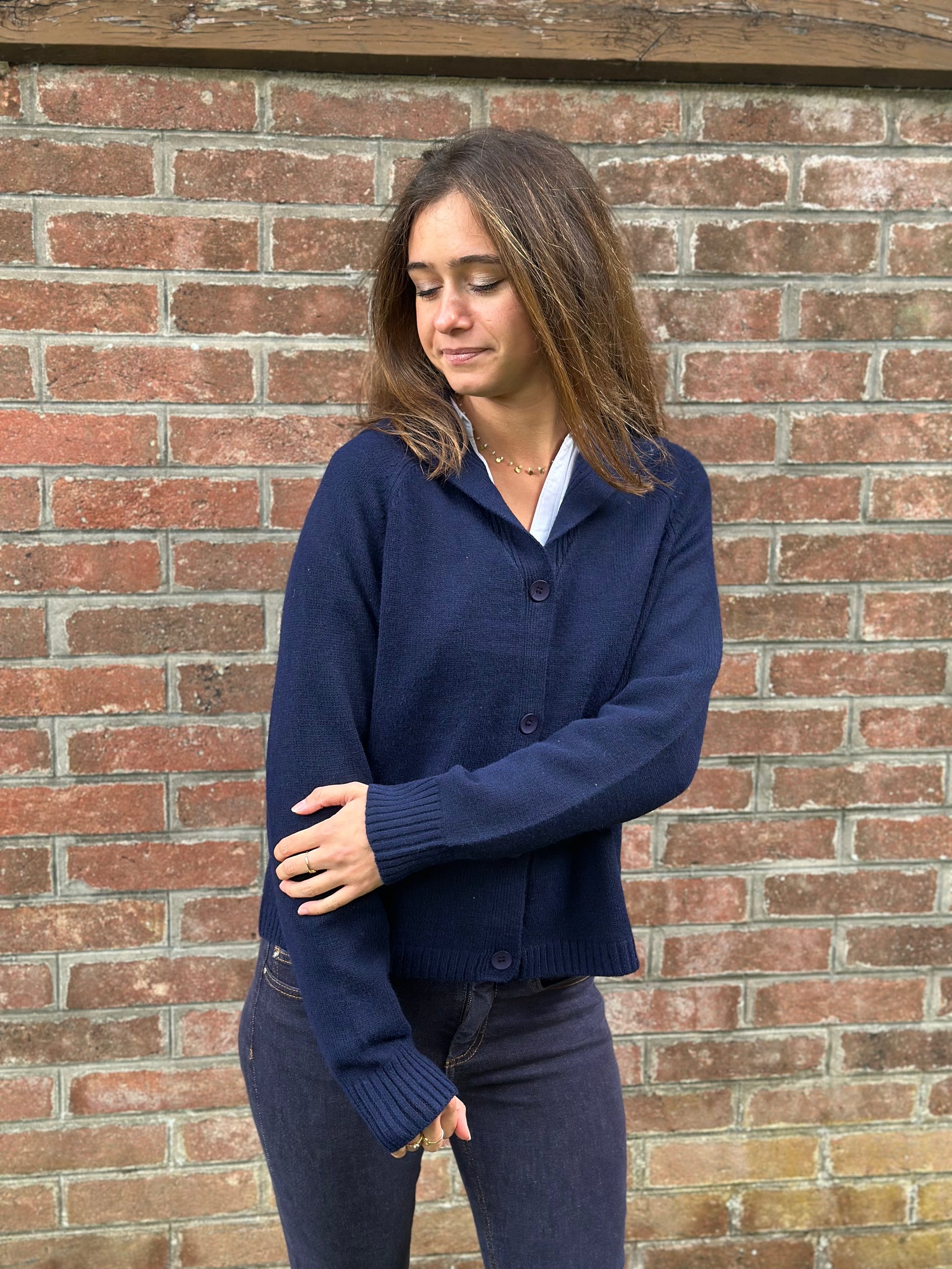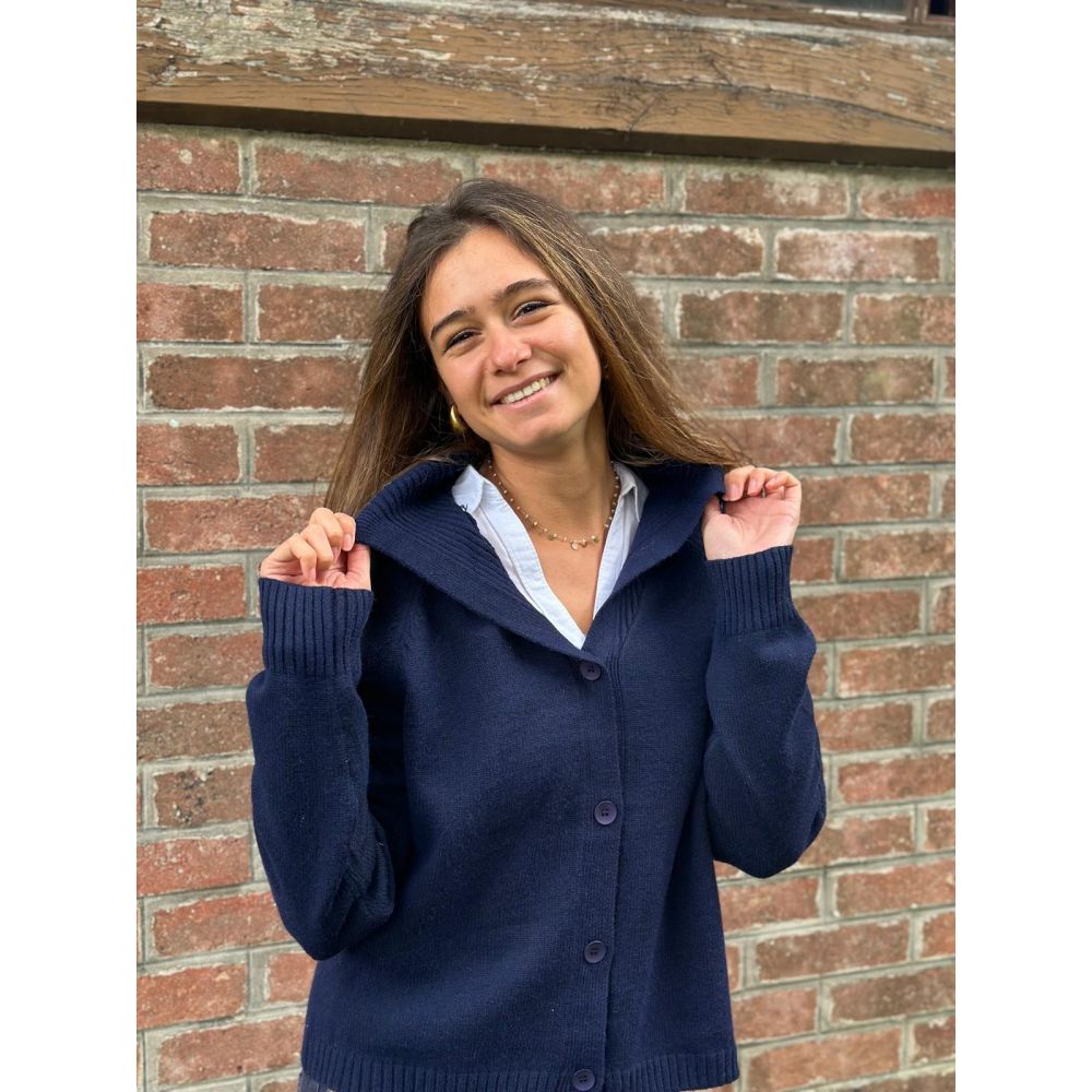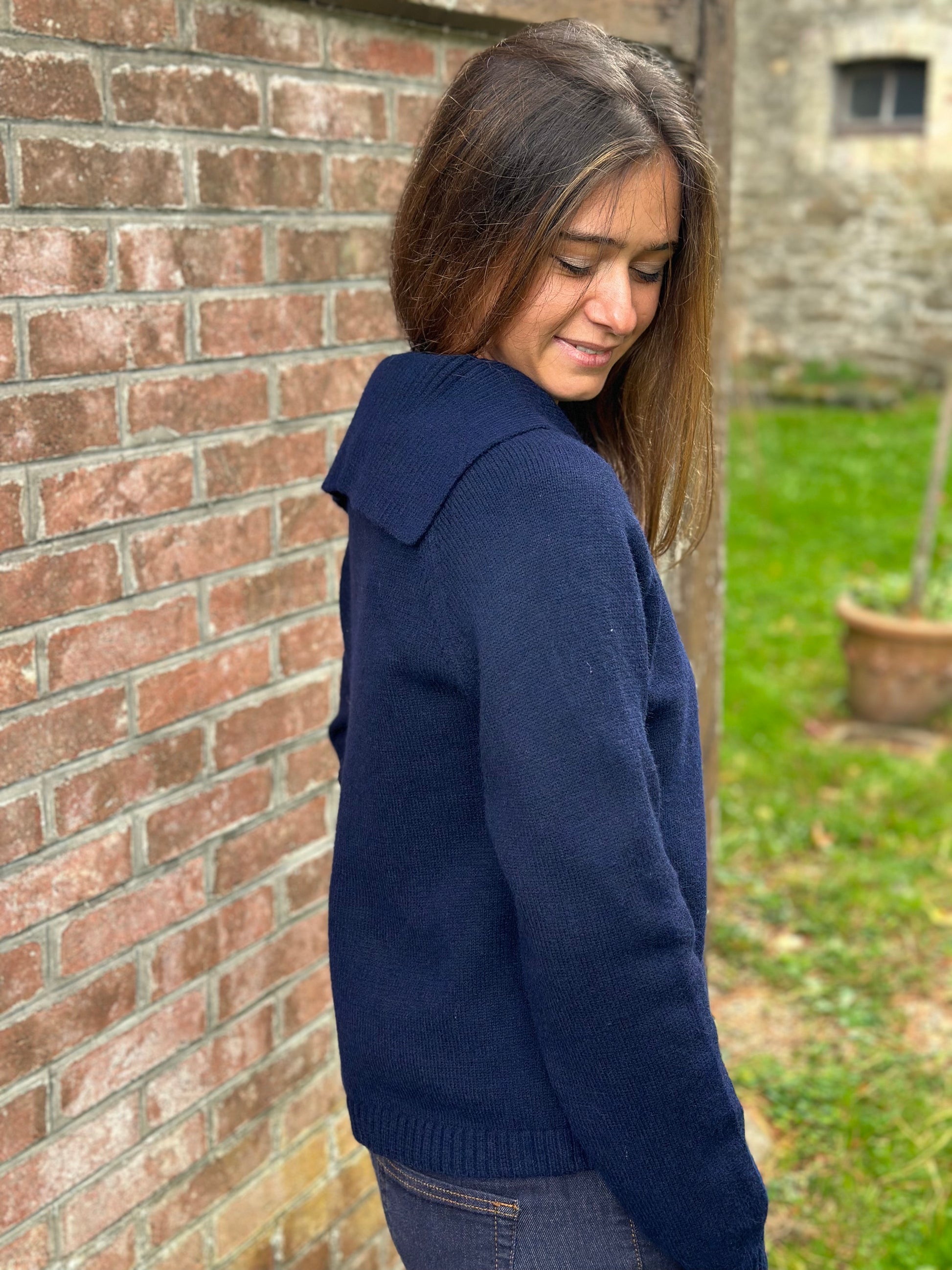 Devenu un classique ! Le gilet marine grand col pour vous tenir bien chaud aux épaules !