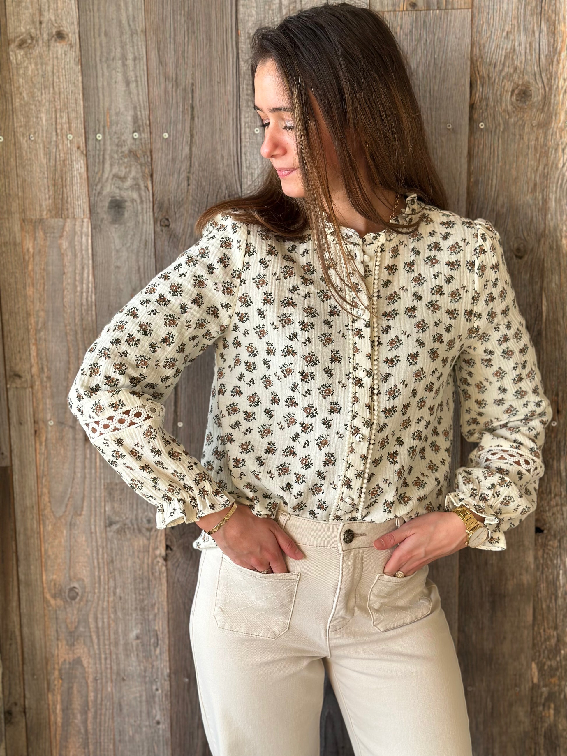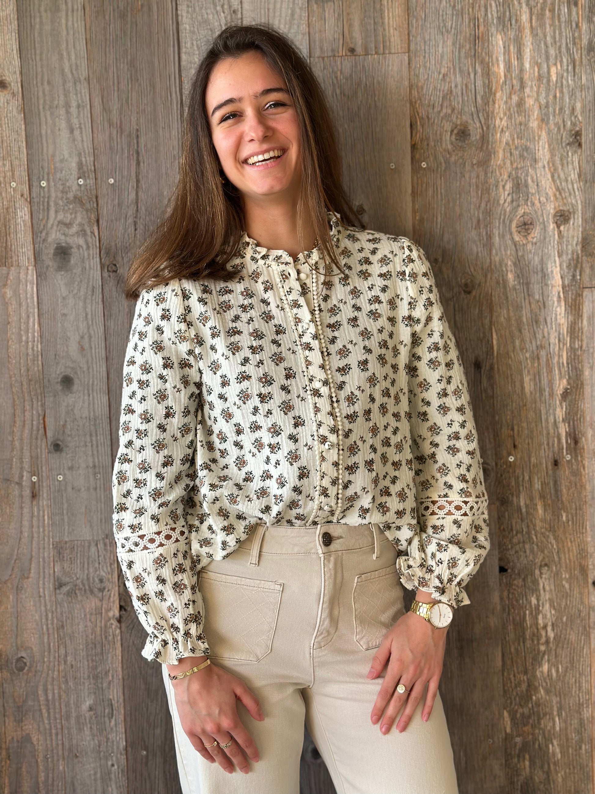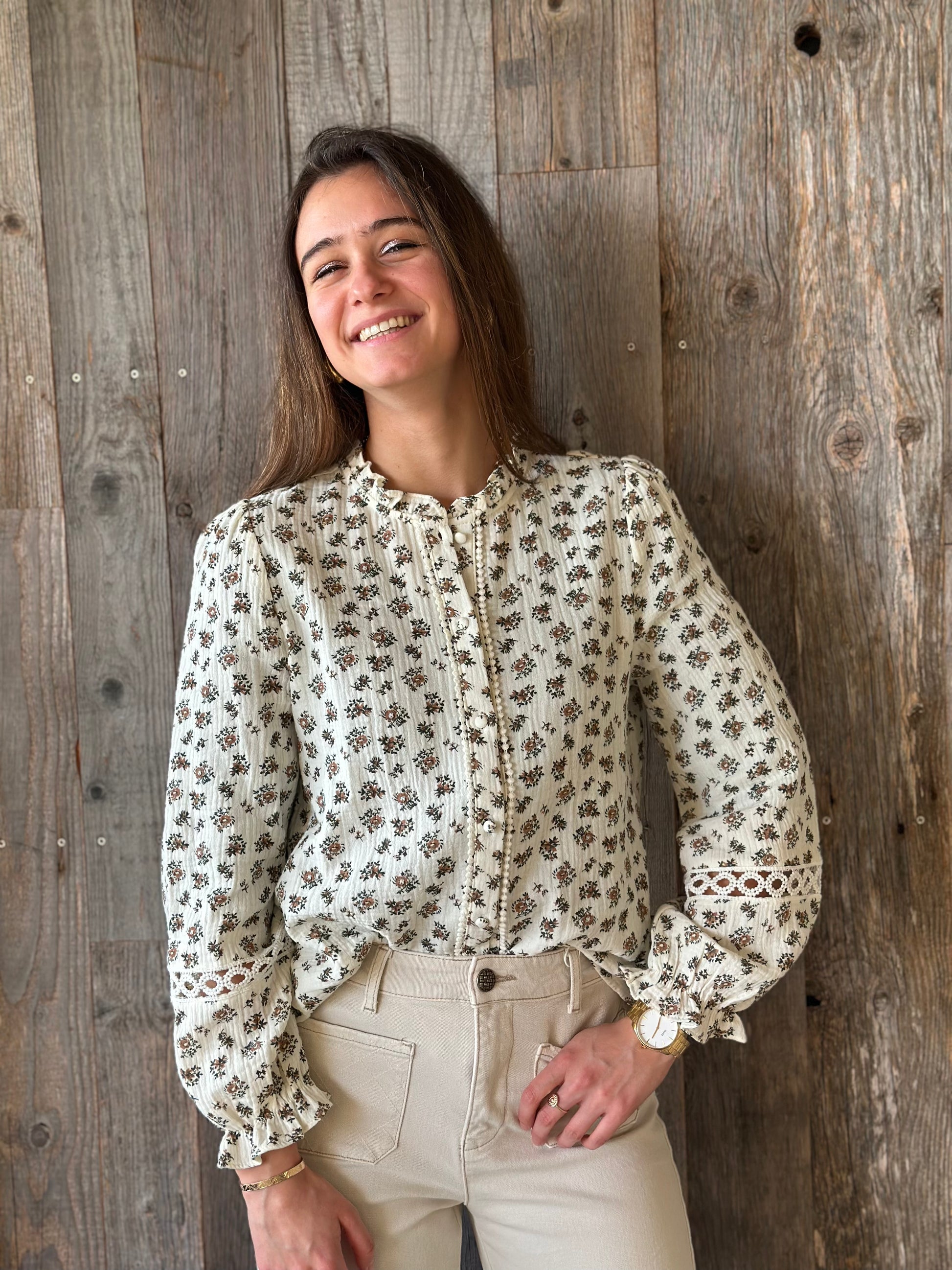 Chemise fleur marron vert