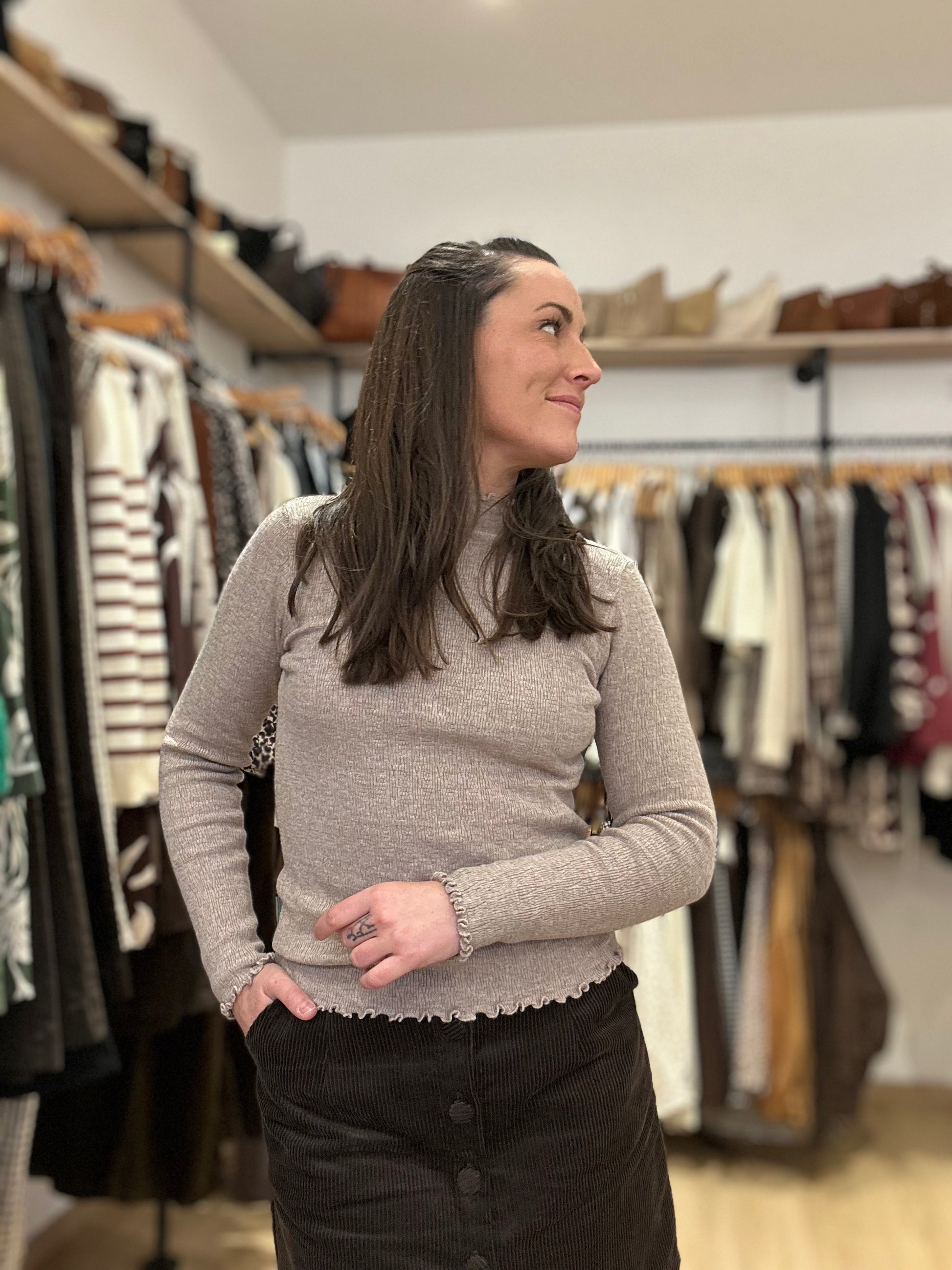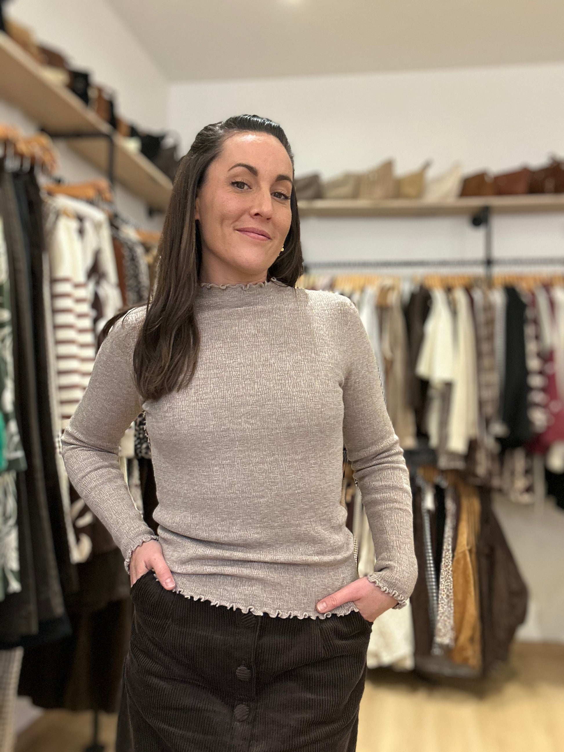 Petite laine taupe volant