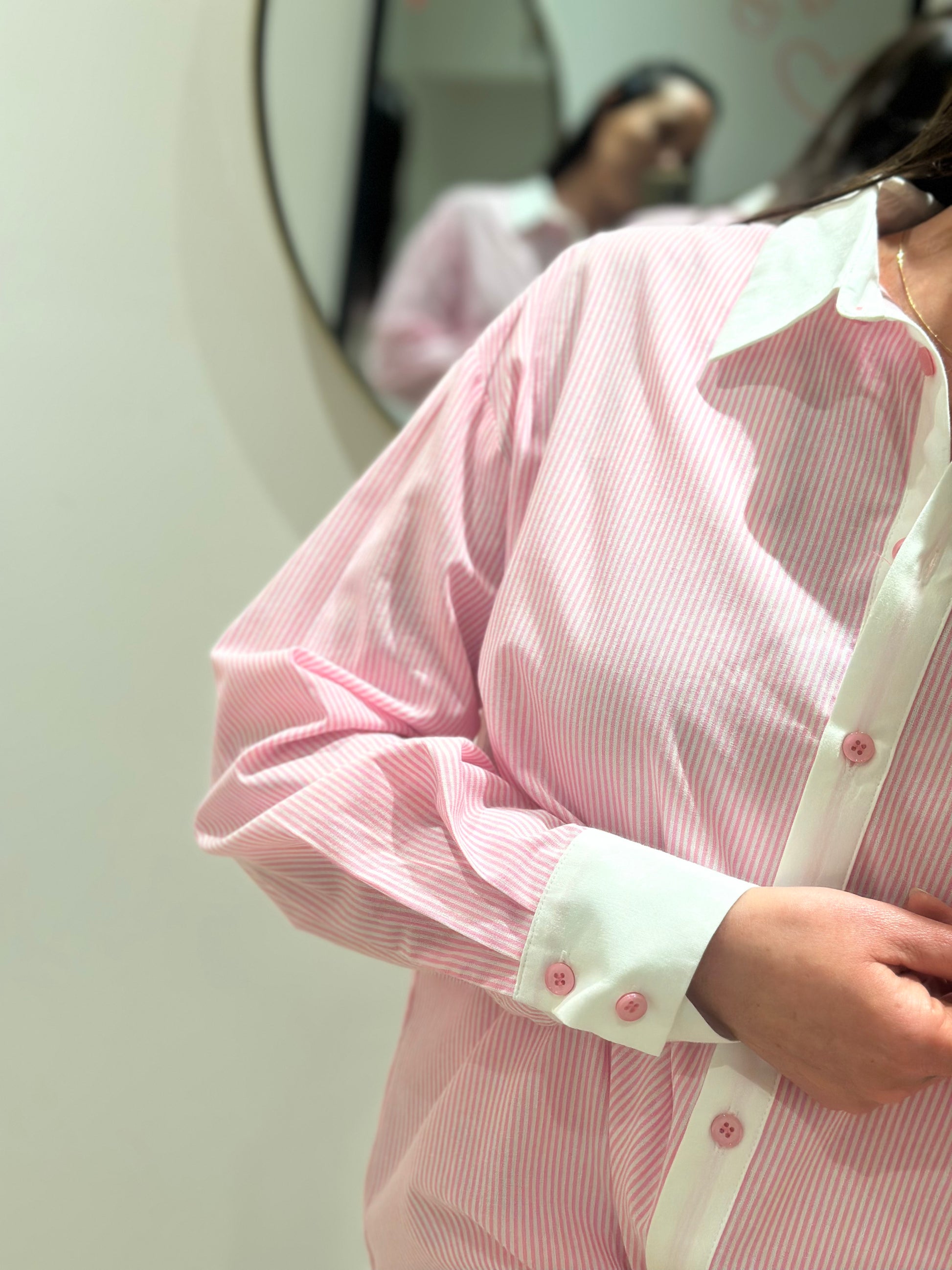 Chemise rose col manche blanc